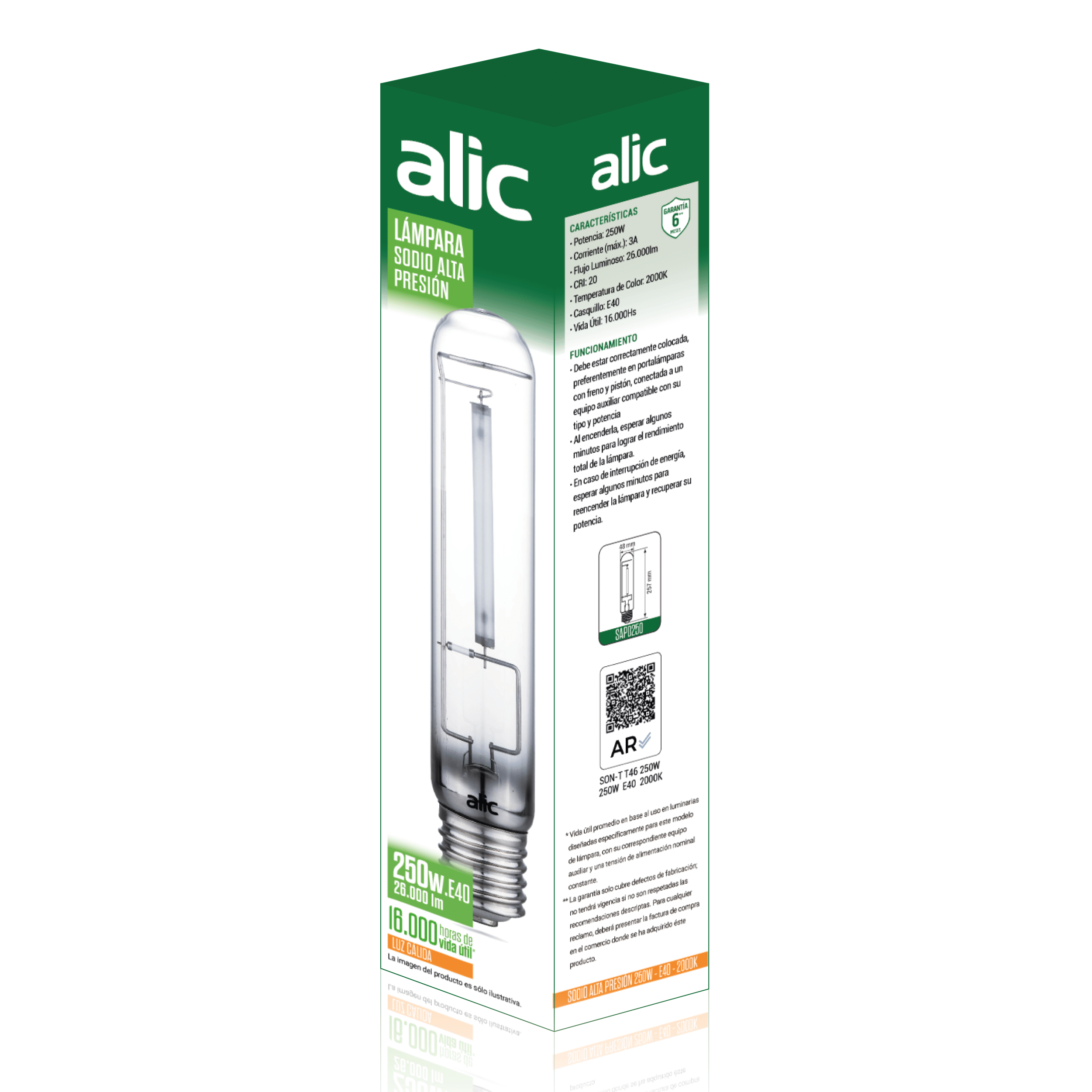 * Vida útil promedio en base al uso en luminarias diseñadas específicamente para este modelo de lámpara, con su correspondiente equipo auxiliar y una tension de alimentación nominal constante. |